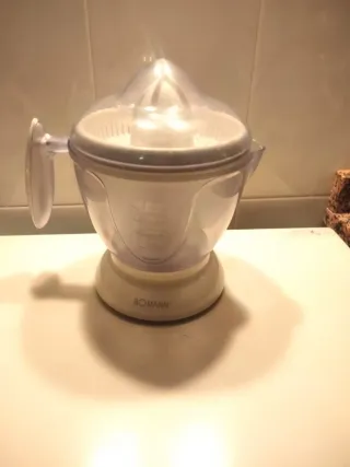 Exprimidor eléctrico de la marca Bomann. - Diseño compacto y funcional. - Jarra transparente con medidor. - Tapa protectora. - Asa lateral para facilitar el manejo.