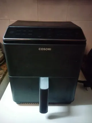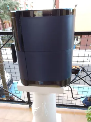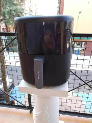 Máquina Cecofry Air Fryer. - Color negro. - Asa gris con texto. - Diseño cilíndrico.