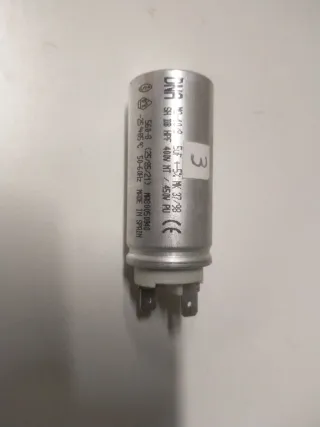Condensador de arranque para compresor de nevera. - Modelo: 560-8 - Tensión: 400V NT / 450V PU - Capacidad: 5+5% uF - Temperatura de operación: -25/+85°C - Frecuencia: 50-60Hz - Fabricado en España