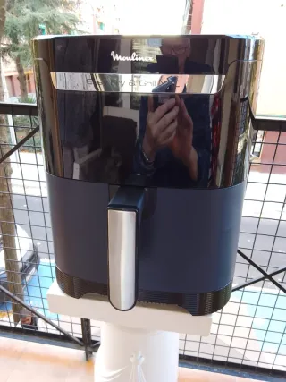 Máquina de cocina Moulinex Easy Fry & Grill. - Diseño moderno en color negro y plateado. - Asa ergonómica para un fácil manejo.