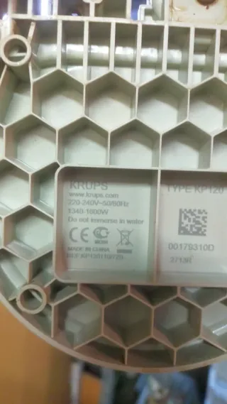 Piezas de recambio para cafetera Krups. - Modelo: KP120 - Voltaje: 220-240V~50/60Hz - Potencia: 1340-1600W - Fabricado en China.