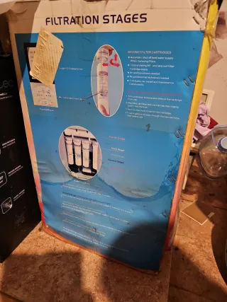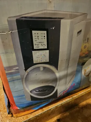 Fuente de ósmosis para el hogar. Diseñada para ofrecer agua purificada. - Panel de control con pantalla digital. - Botones de selección de funciones. - Dispensador de agua. - Diseño moderno y compacto.