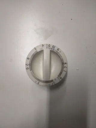 Mando programador para lavadora. Pieza de repuesto. - Color blanco y metalizado. - Diseño circular con selector central.