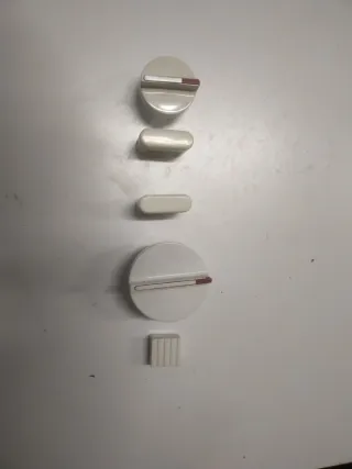Conjunto de mandos y botoneras para lavadora Balay Bat 1517. - Incluye dos mandos circulares. - Incluye dos botones rectangulares. - Incluye una botonera cuadrada.