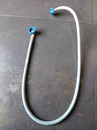 Manguera original de entrada de agua para lavadora AEG Lavamat 6000 L6FBI824U dispongo de más recambios de este modelo, sirve para cualquier lavadora. El tubo es de color gris claro y tiene conexiones azules en ambos extremos. - Conexiones de plástico azul. - Tubo flexible de color gris. - Marcado con REFLEXY PL 200 EN61770 10 BAR 25°C 150 PSI..