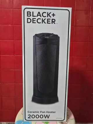 NUEVO sin abrir Black+Decker - Calefactor cerámico portátil de 2000W, 3 modos, termostato regulable, oscilante, sensor anti-vuelco, protección anticalentamiento.