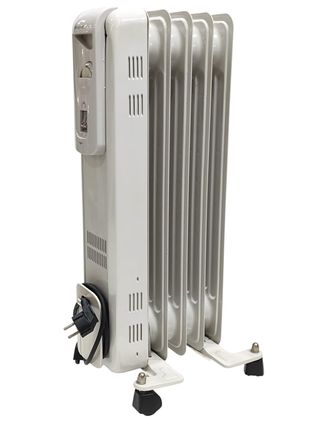 Calefactor portátil de aceite, ideal para calentar espacios pequeños. - Diseño compacto y fácil de transportar. - Ruedas para un desplazamiento sencillo. - Control de temperatura ajustable. - Indicador luminoso de funcionamiento.