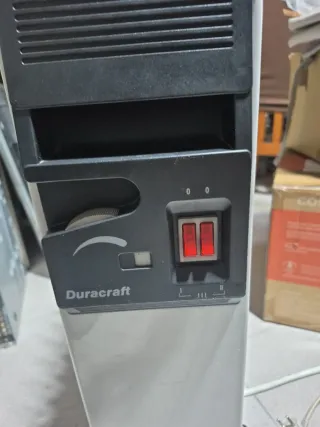 Estufa calefactora de aceite con un diseño moderno y funcional. Ideal para mantener tu hogar cálido.lo único que no le funciona el regulador - Ruedas para fácil movilidad. - Compartimento para guardar el cable. - Incluye manual de instrucciones.