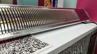Calentador para terraza con diseño moderno. - Estructura metálica negra. - Rejilla protectora. - Elementos calefactores visibles. Tenemos 3 unidades, Descuento si te llevas las 3! Precio Individual 50€ c/u