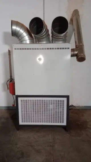 Calefactor industrial de alta potencia. Para nave de más de 1000 mts,depósito gasoil incluido - Conductos de salida de aire. - Estructura metálica robusta. - Rejilla frontal de ventilación.