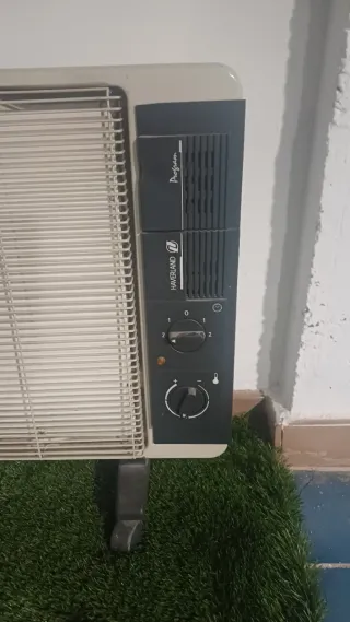 Calefactor eléctrico Jata en buen estado. - Dos niveles de potencia. - Termostato regulable. - Diseño compacto y portátil.