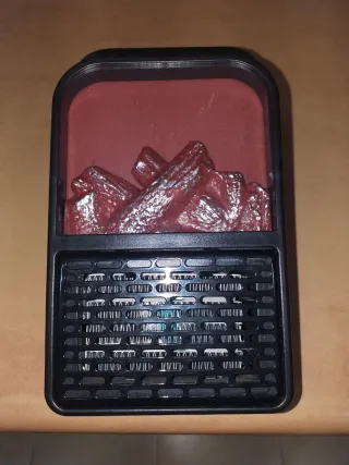 Calefactor portátil con diseño compacto y moderno, imitando un fuego acogedor. - Rejilla frontal de ventilación. - Elementos decorativos que simulan brasas. Se enchufa al enchufa de la luz y ya esta,se puede enviar