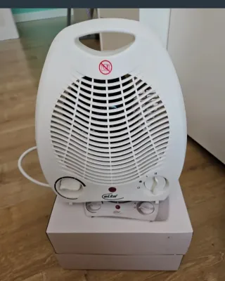 Calefactor eléctrico portátil de color blanco. Ideal para calentar estancias pequeñas, por mas informacion llamame al 655557781, gracias y saludos - Diseño compacto y ligero. - Asa superior para facilitar su transporte. - Dos niveles de potencia. - Termostato regulable.