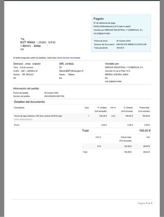 Calentador eléctrico Vaillant de 100 litros, en excelente estado. Fue comprado e instalado hace aproximadamente un año, pero ha tenido un uso muy puntual (unas 10 veces), por lo que está como nuevo. Estaba instalado en una oficina Motivo de venta: Traslado CARACTERÍSTICAS Marca: Vaillant Modelo: eloSTOR plus VEH 100/5-5 Capacidad: 100 litros Potencia: 2.000 W Instalación: vertical Pantalla digital