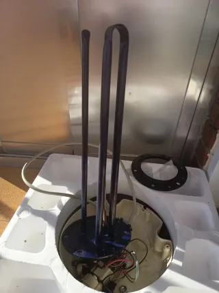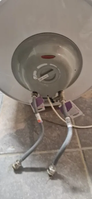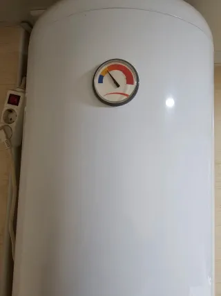 Calentador de agua eléctrico. - Diseño cilíndrico blanco. - Termómetro indicador de temperatura. 100litros. poco uso cambio por que no me va bien con mis placas solares cambio a bombona de gas. esta perfecto y nuevo funciona perfectamente. algo negociable.