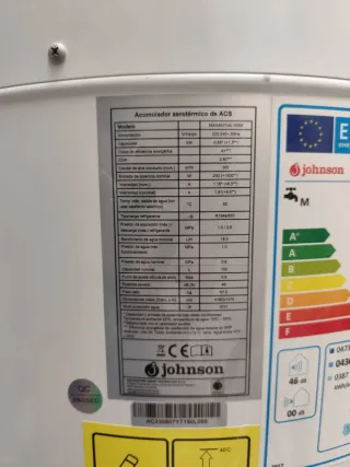 Calentador de ACS Johnson MANANTIAL150M. - Modelo: MANANTIAL150M - Capacidad: 150 litros - Eficiencia energética: A+ - Nivel de ruido: 46 dB