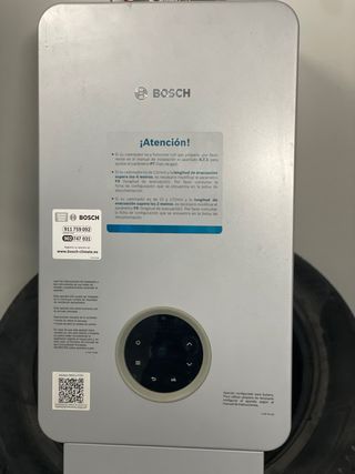 Calentador de agua estanco Bosch modelo 5600. - Diseñado para gas propano. - Requiere ajuste de parámetros F9 y P7 según manual.