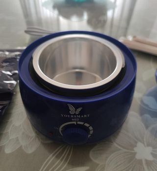 Vendo calentador de cera con dos paquetes de cera y palos de aplicación.