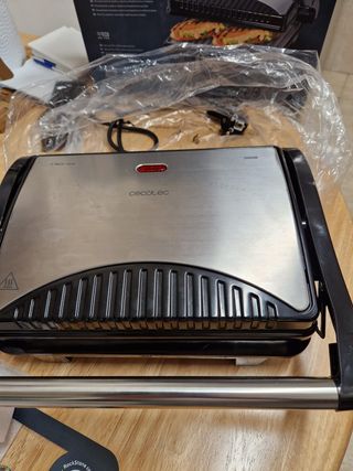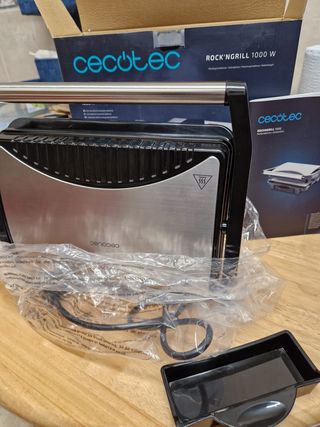 Vendo grill eléctrico Cecotec Rock'nGrill 750 Full Open completamente nuevo, con caja, protecciones y manual de instrucciones. Nunca se ha usado. 🌟 POR QUÉ ES TOP: • Apertura 180°: Úsala como plancha abierta para cocinar más cantidad a la vez. • Revestimiento RockStone: Antiadherente cerámico de piedra, nada se pega. • Ecológica: Libre de PTFE, PFOA y otros tóxicos. • Potencia 750W: Calentamiento rápido y uniforme. • Placa flotante: Se adapta al grosor de cualquier bocadillo o carne. ¡Ideal para desayunos saludables o cenas rápidas! 🚀