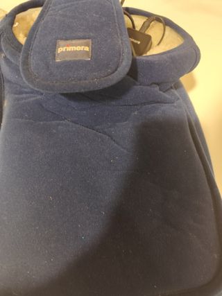 Calentador de pies de la marca Primera. - Exterior de tela azul. - Interior forrado de borreguito. - Cierre de velcro.