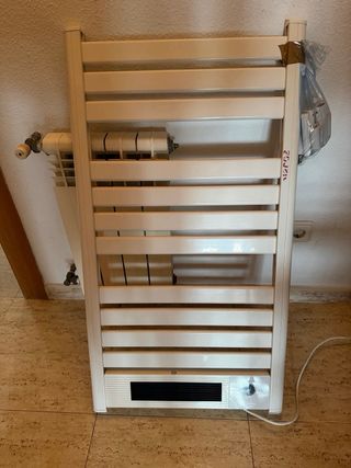 Toallero eléctrico Coctec Ready Warm 9100 en color negro. Cuenta con una potencia de 500W. - Diseño moderno y funcional. - Acabado en negro mate. - Ideal para secar y calentar toallas. Está en buen estado y funciona perfectamente.