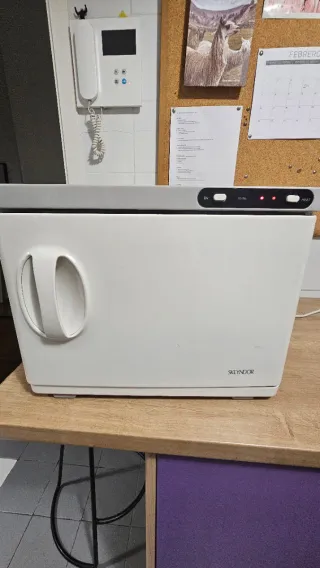 esterilizador calefactor. Con lampara integrada UV, ademas de lampara de ozono. Calienta toallas secas o humedas, esteriliza instrumental o accesorios. Alcanza los 70 gradis en 20 minutos. largo 45, findo y alto 30 centimetros