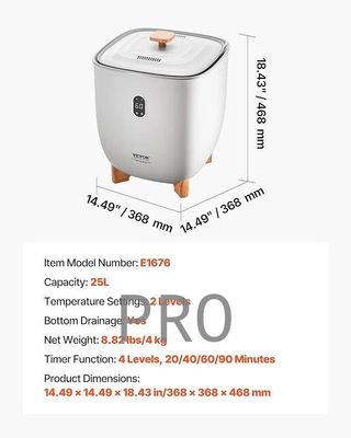 Calentador de toallas VEVOR con capacidad de 25 litros. Diseño moderno con patas de madera. - Panel de control con indicadores HI/LO, encendido y temporizador. - Acabado en color blanco. - Patas de madera de estilo nórdico. VEVOR Calentador de Toallas Cubo de 25 L con Pantalla LED Calentador de Mantas Apagado Automático Secador de Toallas Temporizador de 4 Niveles Temperatura Ajustable para Spa, Hogar, Baño, Gris