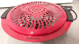 Brasero eléctrico rojo marca Orbegozo.
