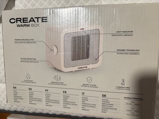 Calentador cerámico CREATE WARM BOX. - Diseño compacto y moderno. - Color blanco y detalles en negro.