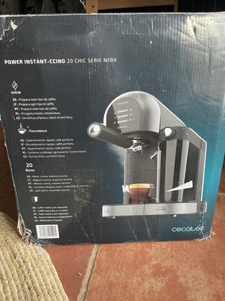 Cafetera Cecotec Power Instant-Ccino 20 Chic Serie Nera. - Potencia de 1470 W. - Bomba de presión de 20 bares. - Sistema Thermoblock para calentamiento rápido. - Permite preparar café molido y en cápsulas. - Diseñada para obtener la mejor crema y el máximo aroma. El depósito del agua esta roto