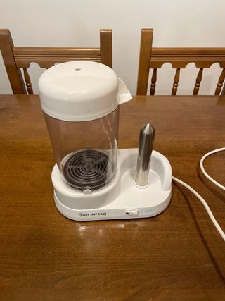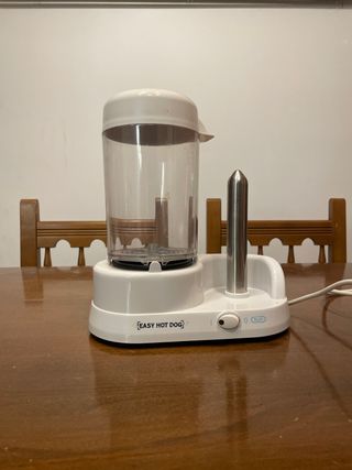 Salchichera Easy Hot Dog en color blanco. Ideal para preparar salchichas de forma rápida y sencilla. - Diseño compacto y moderno. - Incluye varilla para calentar. - Tapa transparente para ver el proceso.
