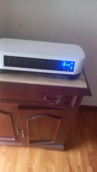 Calentador PTC cerámico para montaje en pared. Y en el suelo también se puede poner perfectamente y está completamente nuevo no hago envíos solo en Logroño en mano da calor es aire acondicionado da mucha calor ideal para el invierno sin usarlo. Está nuevo como se ve en las fotos para aire frío y caliente lo he puesto para probar solo - Incluye kit de montaje. - Mando a distancia incluido