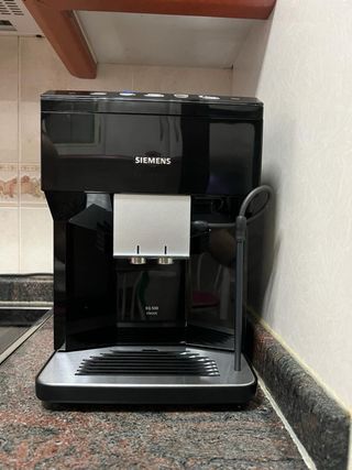 Se vende cafetera superautomatica SIEMENS EQ 500 classic. Se vende cafetera superautomatica, prácticamente nueva, por poco uso y falta de espacio. Dispone de un display tactil donde podras elegir tu cafe preferido con una simple pulsacion - Espresso - Cafe crema - Cappucino - LatteMacchiato Se puede regular la intensidad del cafe, la cantidad y la temperatura. Además puedes preparar espuma de leche y calentar agua para una infusión. Su limpieza y mantenimiento es muy sencillo.