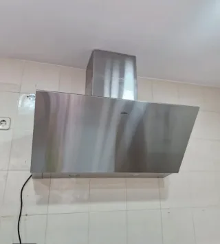 Campana extractora de cocina con acabado metálico. - Diseño moderno. - Material resistente. - Ideal para cocinas.