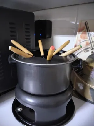 Set completo para preparar deliciosas fondues, ideal para compartir. - Incluye el recipiente principal y su base. - Viene con un libro de recetas para inspirarte.