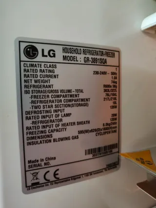 Frigorífico LG de color blanco con tecnología Total No Frost. Dispone de un cajón inferior. - Marca: LG - Modelo: Total No Frost - Color: Blanco