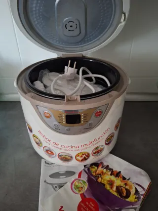 Robot de cocina Moulinex Maxichef multifunción, ideal para preparar una gran variedad de platos. Muy poco uso. - Programas para arroz, pescado, sopas, cereales, cocción rápida y lenta. - Función vapor y postres. - Panel de control intuitivo con pantalla digital. - Botones de inicio, detener y ajuste.