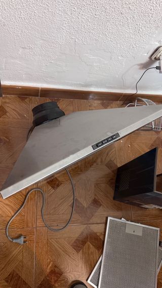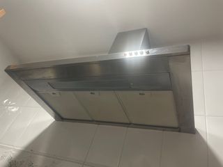 Campana extractora de acero inoxidable. Unos 10 años de uso, funciona perfectamente. - Marca: Zanussi - Material: Acero inoxidable - Controles integrados en la parte frontal, tres niveles de potencia y luz integrada Se entrega con filtros y desmontada, pero se tiene que venir a recoger. Se limpiará lo máximo posible pero hay grasa que no se puede eliminar.