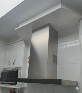 Campana extractora de cocina de acero inoxidable. - Diseño moderno y elegante. - Acabado en acero inoxidable. - Controles frontales. Con pintura blanca porque acabamos de pintar.