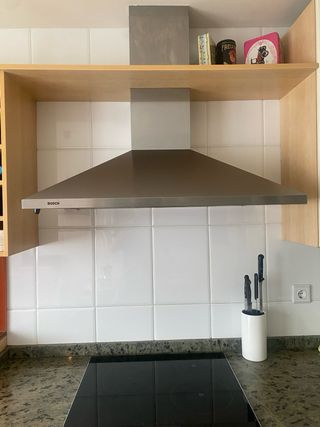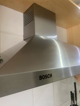 Campana extractora de la marca Bosch, con un diseño moderno y elegante. Se vende porque cambio de cocina pero funciona perfectamente - Acabado en acero inoxidable. - Panel de control integrado.
