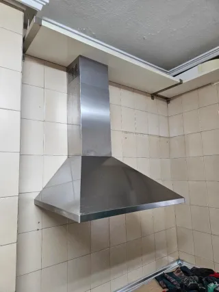 Campana extractora de acero inoxidable, ideal para cocinas industriales o profesionales. Su diseño robusto y materiales de alta calidad garantizan durabilidad. - Fabricada en acero inoxidable. - Diseño de rejilla. - Estructura metálica. - Esta sucia nada mas