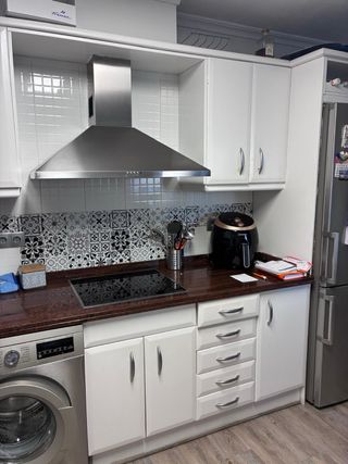 Se vende cocina, excepto microondas y nevera. - Muebles de cocina blancos. - Encimera de granito. - Campana extractora de acero inoxidable. - Vitrocerámica. - Lavadora. - Cajonera con 5 cajones. - Armario inferior con puerta. -Horno(no funciona ventilador) -lavavajillas
