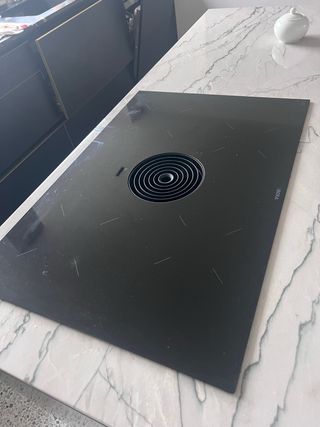 Placa de inducción Bora. - Superficie de cristal negro. - Integración con campana extractora. - Marca: Bora.