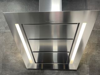 Campana extractora de la marca Nodor(grupo CATA), con un diseño moderno y elegante. - Acabado en acero inoxidable. - Panel de control con botones. - Filtro extraíble - Cristal frontal inclinado