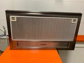 Campana extractora de unas primera marca de cocina en color gris. Diseñada para integrarse en el mobiliario de cocina. - Acabado en metal. - Dos filtros metálicos. - Controles frontales. para recoger en Vigo zona el corte inglés. precio original 220-250€