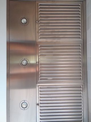 Campana extractora industrial fabricada en acero inoxidable. Ideal para cocinas profesionales. - Construcción robusta en acero inoxidable. - Diseño de campana. - Múltiples unidades de extracción.