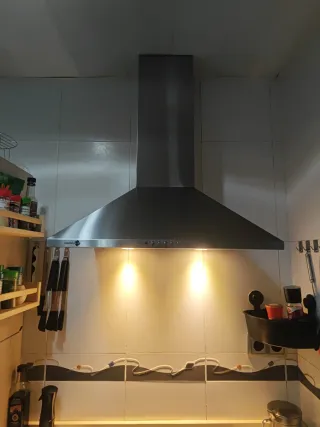 Campana extractora de la marca Control Air, con un diseño moderno y funcional. - Acabado en acero inoxidable. - Controles integrados en la parte frontal. - Diseño piramidal. Se vende porque voy a realizar una reforma integral, la reforma comenzará el 2 de marzo, el artículo podrá recogerse el último fin de semana de febrero, las medidas se encuentran en la galería de imágenes, tengo más artículos a la venta por la reforma.