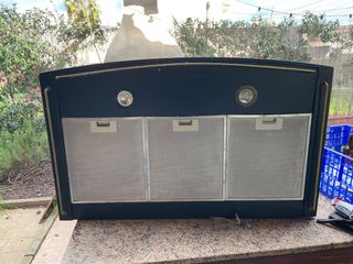 Campana extractora practicamente nueva. Tiene 3 años, pero con poco uso. Tiene dos luces integradas y funcionan correctamente. Se puede desmontar para limpiar el filtro. Medidas: - 55,5 cm ancho cajon integrado - 28 cm largo cajon integrado TUBO 120 - 60 cm de ancho (bandeja extraible)