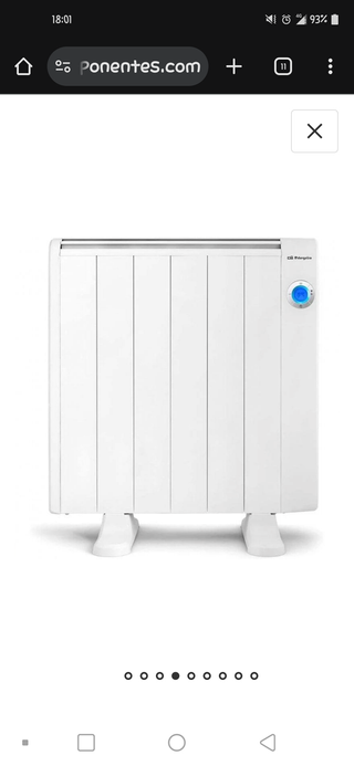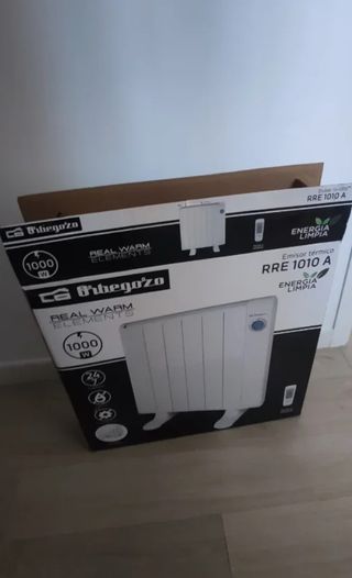 Radiador eléctrico Obergozo RRE1010 de 1000W. Diseñado para calentar estancias de forma eficiente. - Color blanco. - Patas de apoyo incluidas. - Cable de conexión a la red eléctrica.