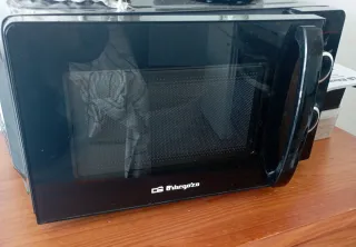 Microondas de sobremesa en color blanco. - Diseño compacto. - Panel de control con mandos giratorios. - Puerta con tirador. - Rejillas de ventilación en la parte superior.